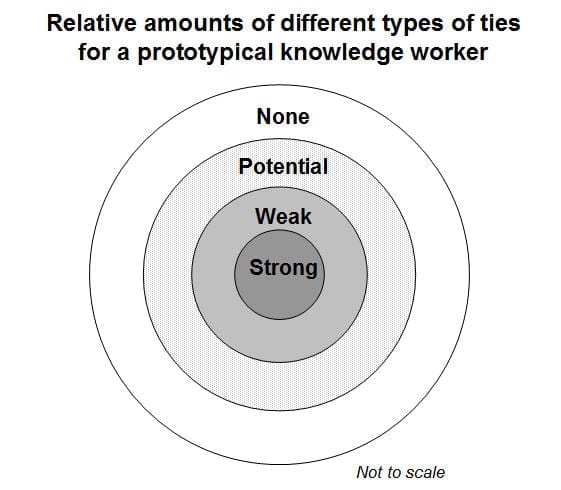 Deze benefits van McAfee boden mij wel interessante inzichten, maar de validiteit is volgens mij misschien wat twijfelachtig. Zo zwart / wit als Andrew dit model neerzet is het niet en het lijkt me niet moeilijk te onderbouwen dat bijvoorbeeld social networking ook een aanwinst is voor strong ties. Je voegt immers toch vaak als eersten de personen die dicht bij je staan aan je netwerk toe…