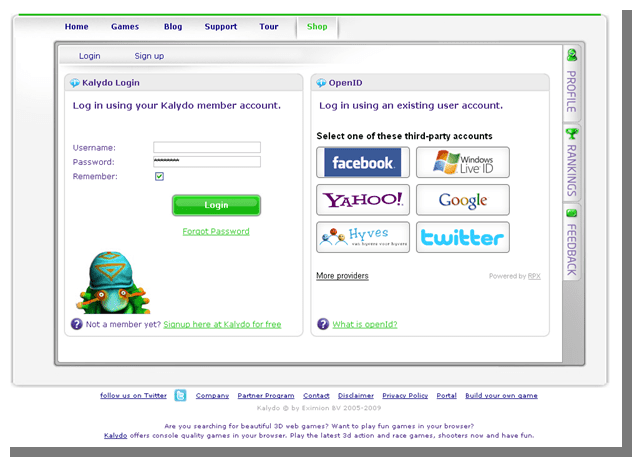 Het belang om bezoekers een persoonlijke behandeling te geven wordt door steeds meer winkeliers ingezien. Daarom bieden veel webwinkels een ‘Mijn-omgeving’ achter een login waarin gebruikers hun orders kunnen checken en relevante aanbiedingen krijgen. Maar webwinkels zijn niet de enige die dit inzien. Zo beschik ik zelf (onder andere) over een ‘Mijn-verzekeraar’, ‘mijn-bank’, mijn-energieleverancier’, verschillende ‘mijn-winkels’, ‘mijn sociale netwerken’ & ‘mijn-telefoon rekening’. Gevolg: ik word helemaal gek van alle verschillende logins en gebruikersnamen waardoor ik minstens de helft niet gebruik. Daar ben ik vast niet de enige in. Online gamingsite Kalydo biedt een interessant antwoord op deze problematiek: