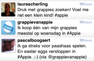 Op Eerste Paasdag vroeg verscheen op iPhoneclub het berichtje dat er vijf paaseieren, zogenaamde Eastern Eggs, in de applicatie Appie verstopt zitten. Klanten moeten willekeurige produkten in de app aanklikken en af en toe verschijnt er een grappig filmpje; een grappie van appie. Tegelijkertijd worden er via Twitter hints gegeven. Al snel worden de eerste filmpjes gevonden en uitgewisseld via Twitter.