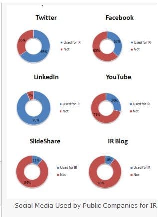 Onderzoek onder ruim 360 ondernemingen van het Canadese Q4 Websystems (gespecialiseerd in IR-websites en nieuwsvoorziening) toont echter wel een significante stijging aan in het gebruik van social media voor IR- en Persdoeleinden.