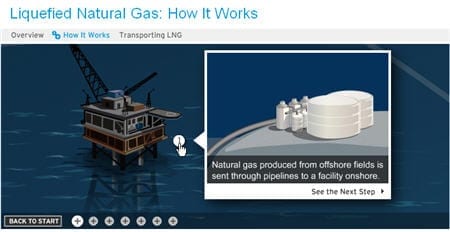 Onlangs publiceerde Jungle Minds de resultaten van de jaarlijkse Henri Sijthoff-Prijs . Eén van de conclusies luidde dat bedrijfsinformatie niet altijd even compleet en duidelijk is. Met andere woorden, bedrijven vertellen op hun corporate websites niet altijd even duidelijk wie ze zijn en wat ze doen. Ook hier zou de infographic uitkomst bieden. Zo biedt de Amerikaanse energiegigant Chevron op haar corporate website een begrijpelijke infographic over het proces van gasdelving.