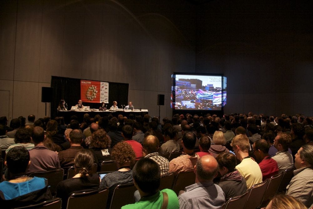 Als museumspecialisten wilden we deze sessie natuurlijk niet missen. Eerder deden we verslag van de Museums and the Web conferentie die jaarlijks plaatsvindt. Hier op southby is het natuurlijk maar een speld in een hooiberg. De ontwikkelingen van het digitaliseren van archieven en collecties en deze vervolgens online zetten en mashen met locaties, tijden, mensen en andere parameters gaan inmiddels razendsnel. Maar niet snel genoeg en vanzelfsprekend met te weinig geld. Het grootste ‘museum’ van de wereld, het Smithonian, was in de persoon van Michael Edson virtueel aanwezig in de vorm van een videoboodschap en via Skype. Dit instituut heeft zijn beleid redelijk drastisch omgegooid en is bezig met een eigen commons platform dat vervolgens opengesteld gaat worden. Rechten en eigenaarschap zijn de issues waar instellingen wereldwijd mee bezig zijn. Flickr Commons lijkt niet de juiste route en schijnt een wachttijd te hebben van een jaar.