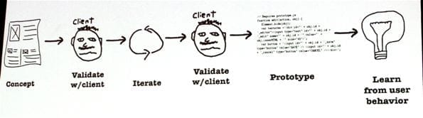 Jeff deed een oproep aan alle ontwerpers die het gevoel hebben dat Agile en Lean hun ontwerpproces bedreigen: “je kunt je niet langer achter je monitor verbergen. Je moet op pad gaan, je werk aan veel meer mensen laten zien. Lang voordat jij denkt dat het af is.”