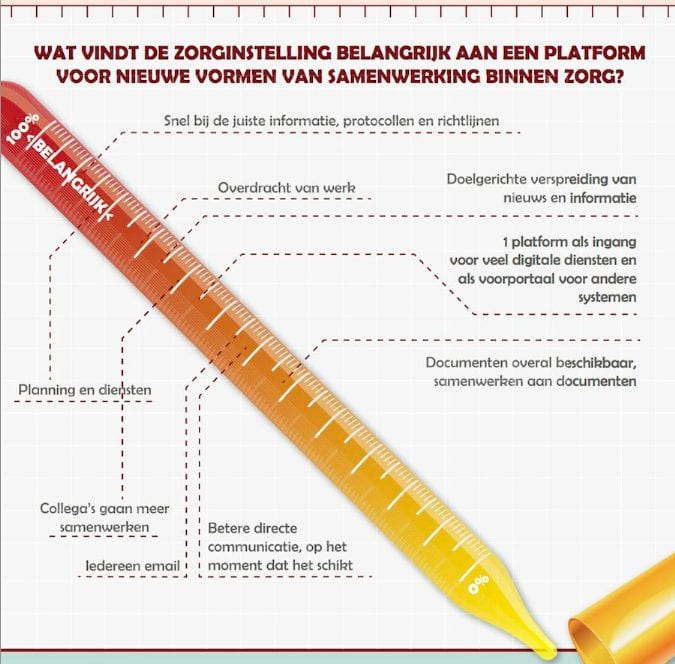 Want we móeten meer met minder doen, met minimaal gelijkblijvende kwaliteit. Eén van de richtingen waar binnen verbetering noodzakelijk is, is de zorgverlening, zoals ouderenzorg en thuiszorg. Communicatiemiddelen, sneller informatie beschikbaar hebben en beter kunnen samenwerken met mantelzorg – zoals familie – en met de cliënt zelf, zijn ‘low hanging fruit’.