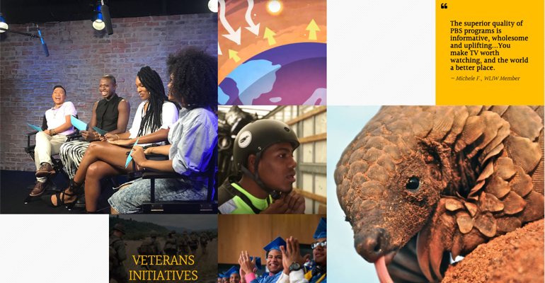 Ook in de VS hebben ze een publieke omroep. WNET presenteert een jaar zinvol entertainment en educatieve producties in een tegeltableau. We treffen een aantrekkelijk overzicht met blokken die naar achterliggende verhalen leiden.