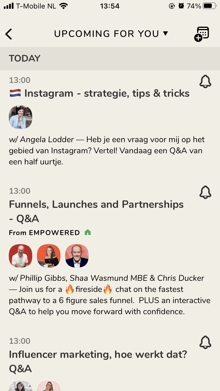 Daarnaast weet je alleen hoe laat een bepaalde room start, maar staat er niet altijd een eindtijd bij. Dus je weet niet altijd waar je aan toe bent. Maar dat is misschien iets waaraan ik moet wennen. En het wakkert de FOMO natuurlijk lekker aan, dus dat zal wel voordelig werken voor de app.