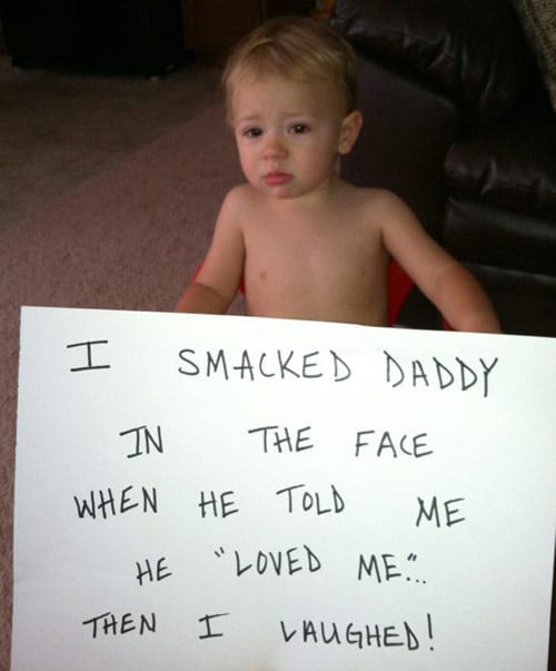 Maar het redelijk onschuldige petshaming is niet te vergelijken met kidshaming, wat dus steeds vaker gebeurt. Uiteenlopend van tv-acties als die van Derek Hensley tot vergelijkbare foto’s als die we kennen van dogshaming.
