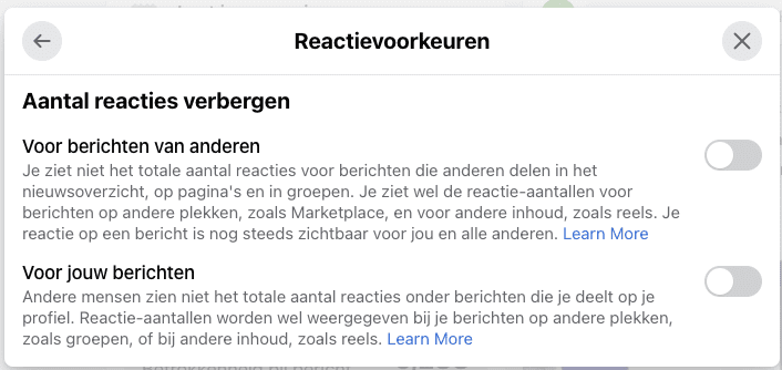 Inmiddels is het moment daar: Facebook heeft de knoop doorgehakt en rolt nieuwe opties voor het verbergen van likes uit op zowel Instagram als Facebook. Maar hierbij hebben ze wel goed geluisterd naar de wensen van de gebruikers: er zijn namelijk 4 verschillende opties: