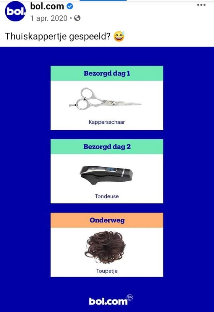 Daarna volgde snel VakantieVeilingen, die een toiletpapier grap heeft bedacht. Wat opvalt is dat bedrijven niet op het virus zelf inhaken, maar vooral op het gedrag van Nederlanders tijdens de pandemie. Hier lijkt de grens getekend wat wel en niet kan.