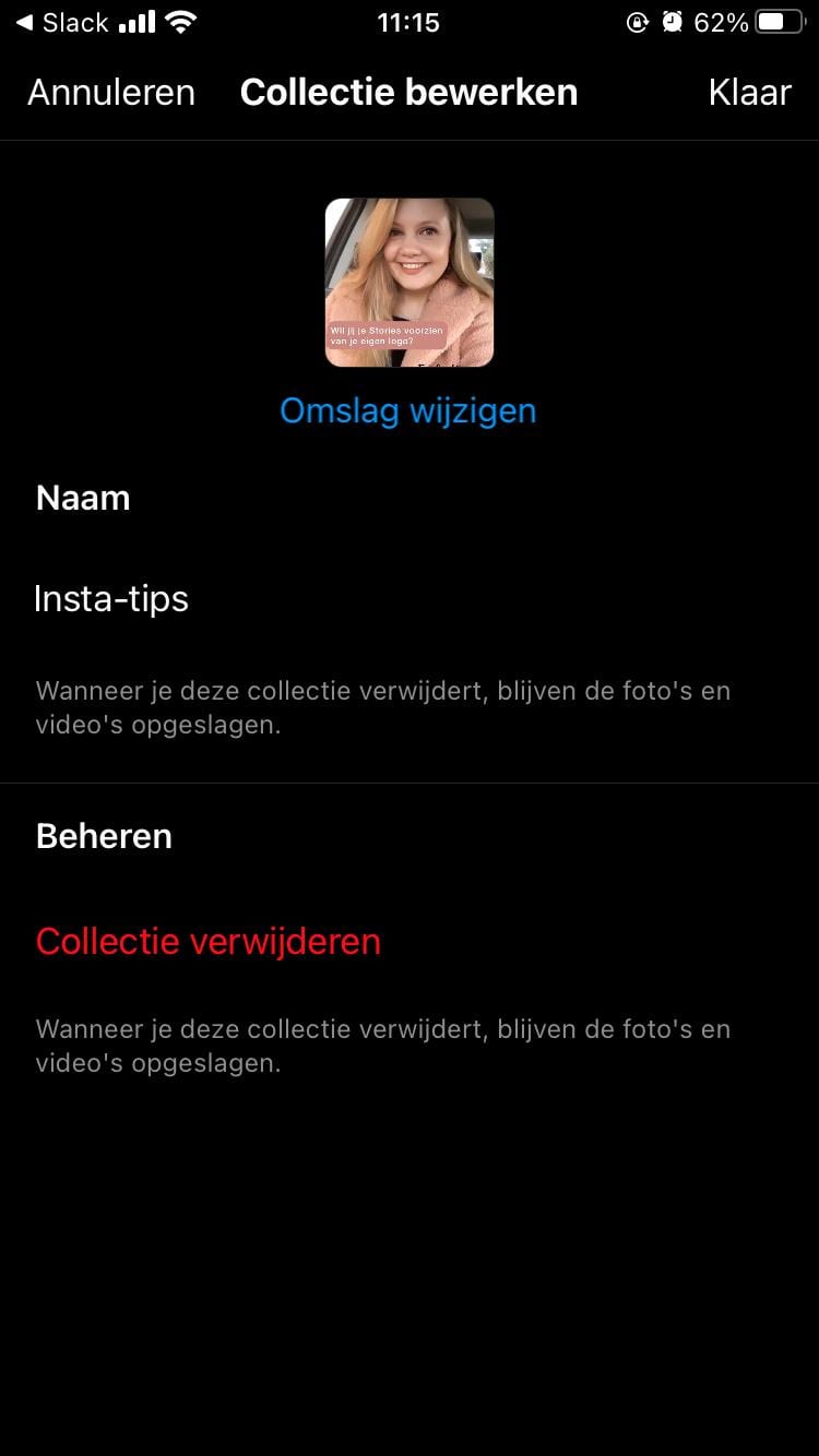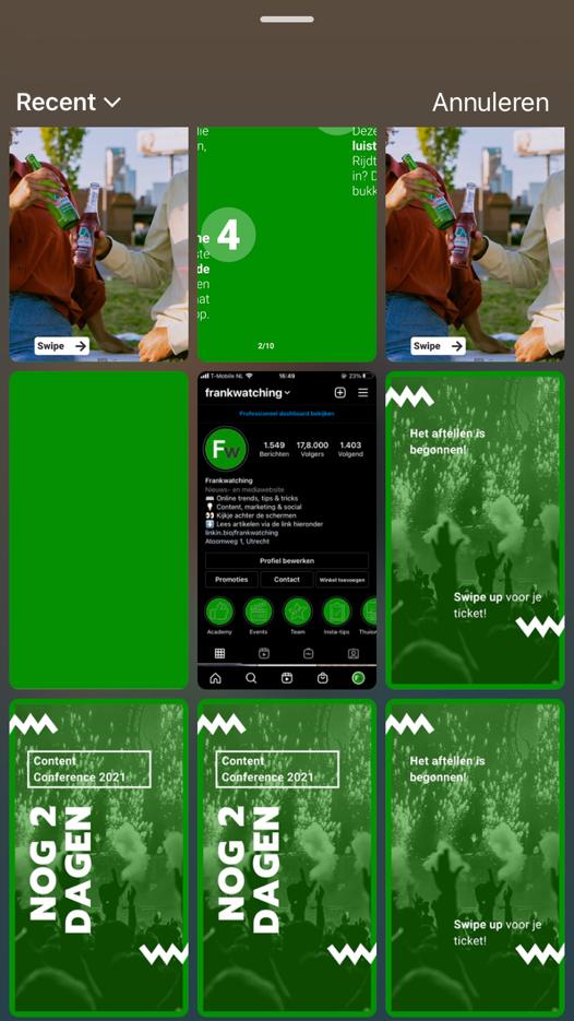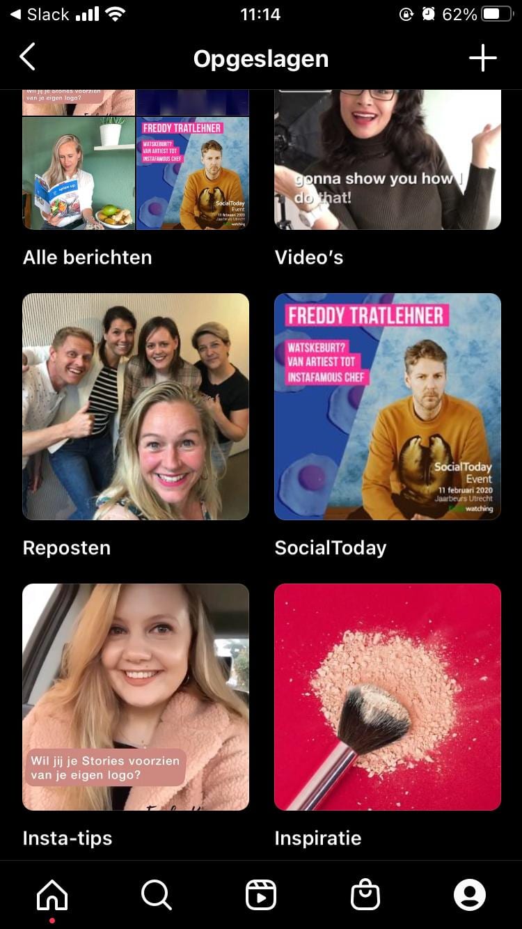 Op deze manier kun je dus bijvoorbeeld mapjes maken voor bijvoorbeeld opgeslagen tips, recepten, reisbestemmingen. Maar je kunt het ook gebruiken voor je Instagram-strategie. Zo hebben wij bij ons Frankwatching-account een tijd geleden een Collectie gestart met de naam ‘Reposten’. Daarin verzamelden we posts die we leuk vonden om in onze Stories te delen.