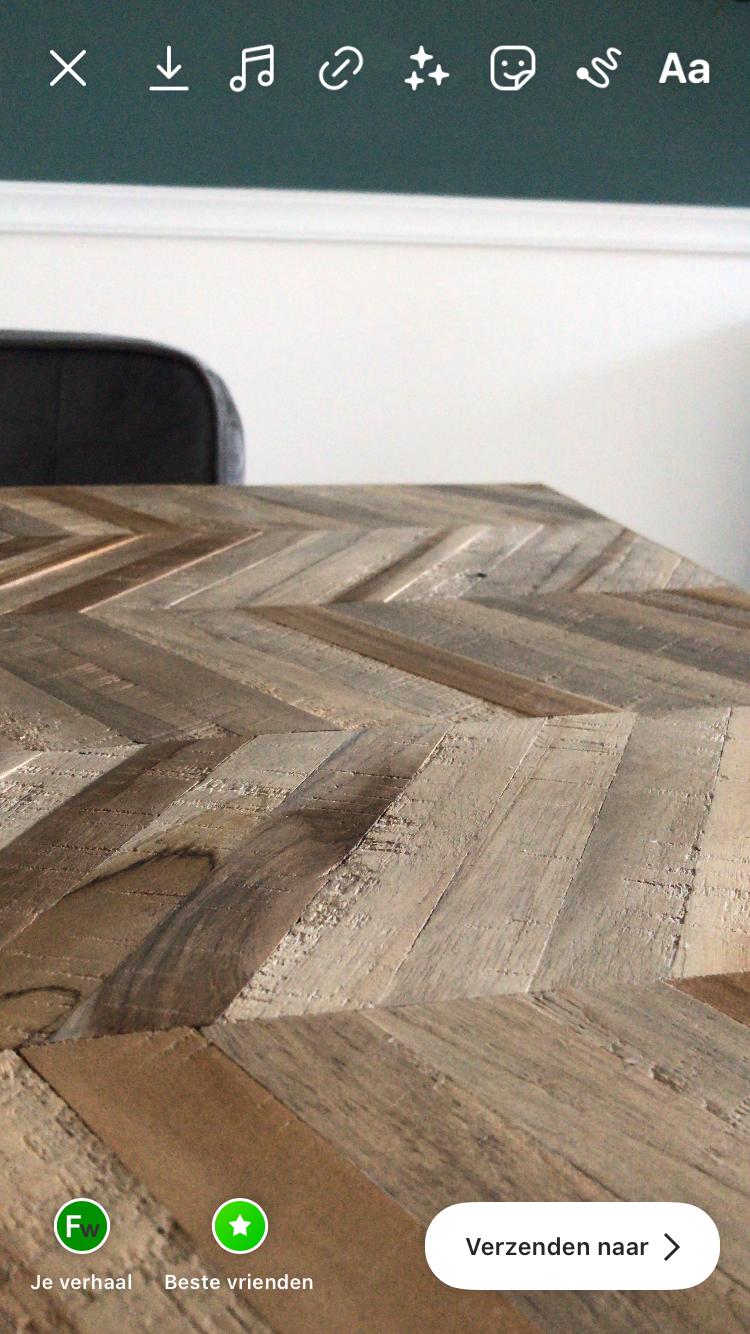 Het is een beetje omslachtig, dat geef ik toe, maar er is dus een manier om de achtergrond aan te passen. Allereerst voeg je de post die je wil delen toe aan je Story. Vervolgens kies je via de sticker-optie voor een foto uit je bibliotheek waar bijvoorbeeld je huisstijlkleur op te zien is.