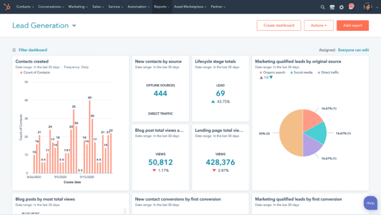 Voorbeeld HubSpot: analyseer via reporting-tools het succes van jouw marketinginitiatieven.
