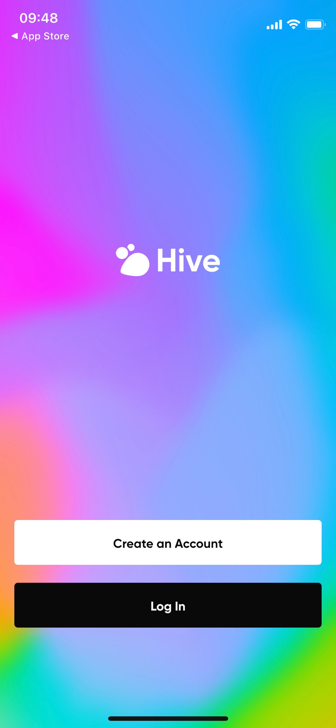 Bij het opstarten de app (er is geen desktopversie beschikbaar) krijg je de optie om een account aan te maken via je mailadres, Google of Apple. Ik wilde graag een account starten via mijn mailadres. Hive liet mij eerst niet doorklikken op ‘continue’, waarna er ook geen bevestigingscode naar m’n mail werd verstuurd. Na dit een aantal keer te hebben geprobeerd, besloot ik toch maar (tegen m’n zin) een account aan te maken via mijn 06-nummer. Dit ging in een keer goed, wat mij extra laat twijfelen aan deze keuze. Al kan het natuurlijk ook zo zijn dat Hive op dit moment de grote toestroom aan nieuwe accounts niet aan kan.