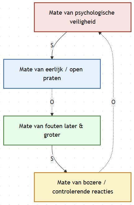 Zo koppelt het team fouten melden aan leren en waardering, in plaats van straf. De lus draait om: meer openheid, minder verrassingen, mildere reacties en een hogere psychologische veiligheid.