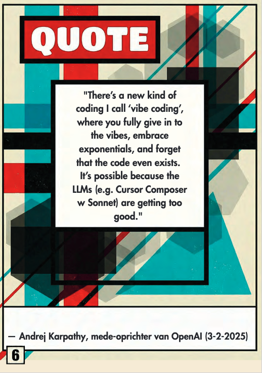 Als je dat wat systematischer aan wil pakken, is er nu Handboek vibecoding (affiliate). Bouw zonder technische kennis, sites, apps en tools van Erwin Blom. Een bevlogen pamflet dat uitlegt waarom jij je eigen software en tools wil maken en hoe je dat vandaag nog begint te doen. Het boek heet een handboek maar heeft een rauwe, grafisch brutale vormgeving. De schrijfstijl is eerder die van een pamflet, dan van een instructief handboek: vol energie en enthousiasme.
