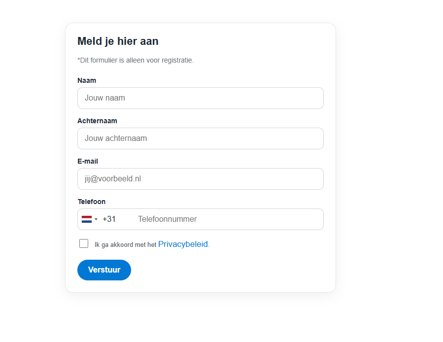 5. Registratie eenvoudig maken. Een kort, gebruiksvriendelijk formulier verlaagt de drempel om je aan te melden.