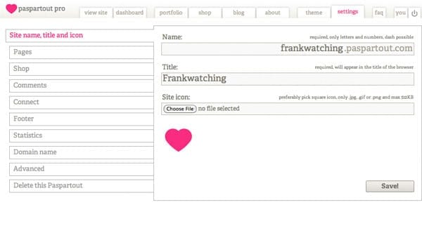 “Paspartout is een online service waarmee je op korte tijd je eigen portfolio hebt gemaakt. Paspartout biedt ook de mogelijkheid om te bloggen of zelfs een online shop te openen. De basis van de service is volledig gratis. Als je meer wilt kun je Paspartout Plus of Pro aanschaffen waarmee je volledige controle over de layout (via CSS) en de online shop hebt.”